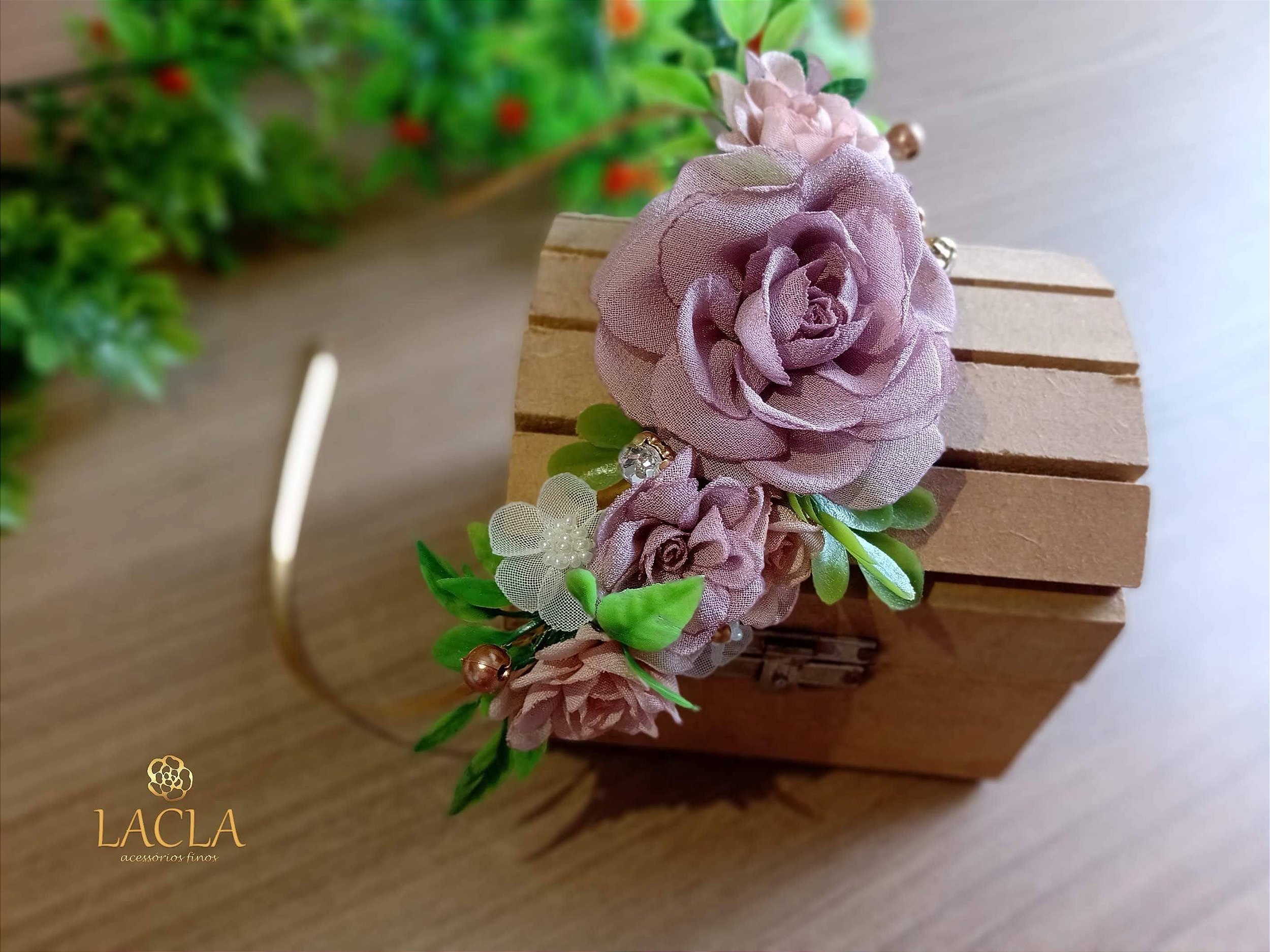 Tiara flores do campo, uma tiara que traz a delicadeza das flores com aquela sensação de ter passado pelo campo, colhido algumas flores e colocado elas no cabelo. As folhas entre as flores traz naturalidade...